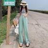 Women's Mint Green High-Waisted Wide Leg Jeans, Korean Style, Floor-Length, Loose Fit, Plus Size, Summer. — tüm dünyaya ücretsiz teslimat ile online ürün satın alın!