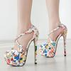 Marka Tasarımı El Boyaması Deri Platform Topuklu Ayakkabılar Kadın Seksi Açık Burun 16CM Ekstrem Yüksek Topuk Stiletto Parti Ziyafet Ayakkabıları