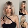 Beyaz Sarışın Bob Sentetik Peruk Kısa Düz Patlama ile Doğal Saç Peruk Kadınlar için Cosplay Peruk Isıya Dayanıklı