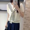 Striped Shawl fake two pieces sweater Versatile Short Sleeve casual Knitted Top For Spring & Summer Women's Clothing yellow Tops