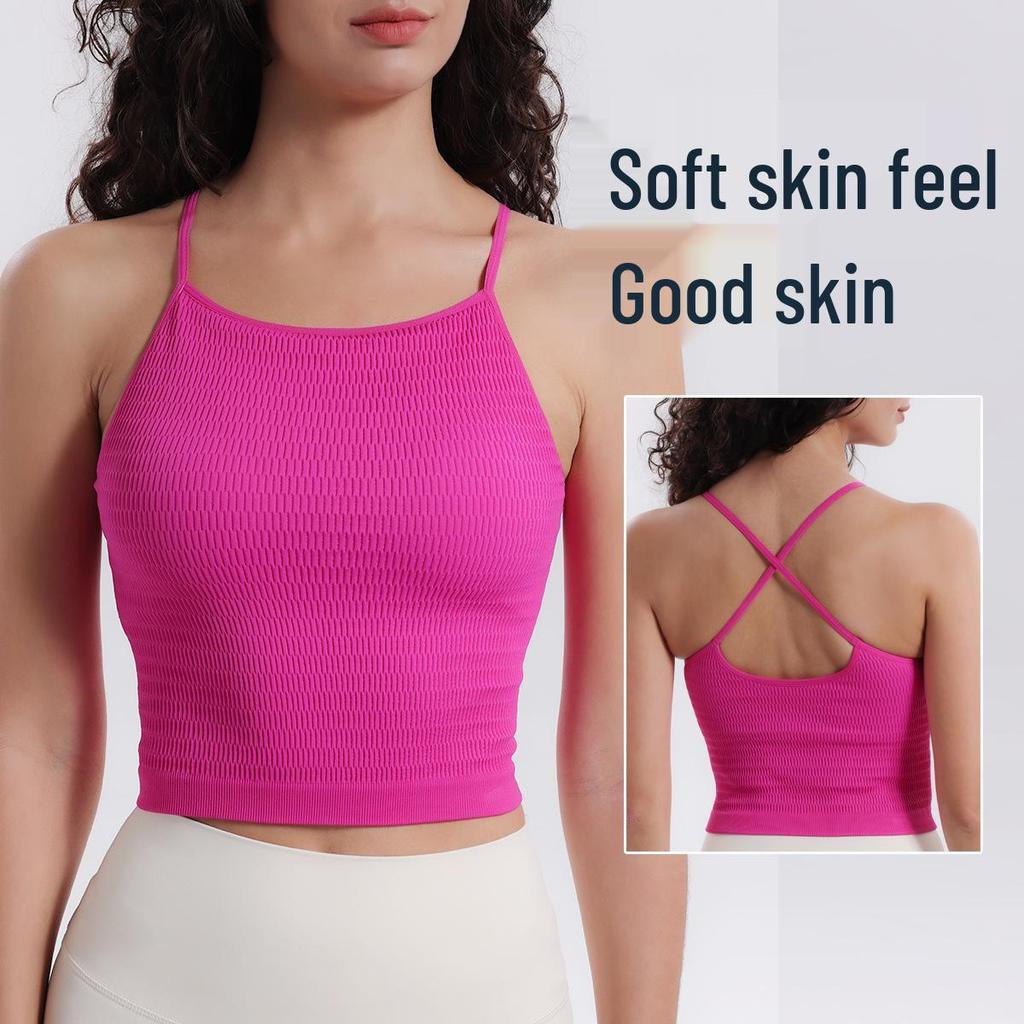 Yoga One-Piece Shockproof Camisole Sports Bra with Chest Pads & Beautiful Back Design for Women