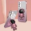 For Samsung Galaxy A32 4G (EU Version) Electroplating Phone Cover PC+TPU Case with Astronaut Kickstand