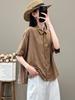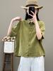 Literary and retro style linen shirt women's summer temperament commuting solid color versatile lapel cotton and linen five-quarter sleeve top women