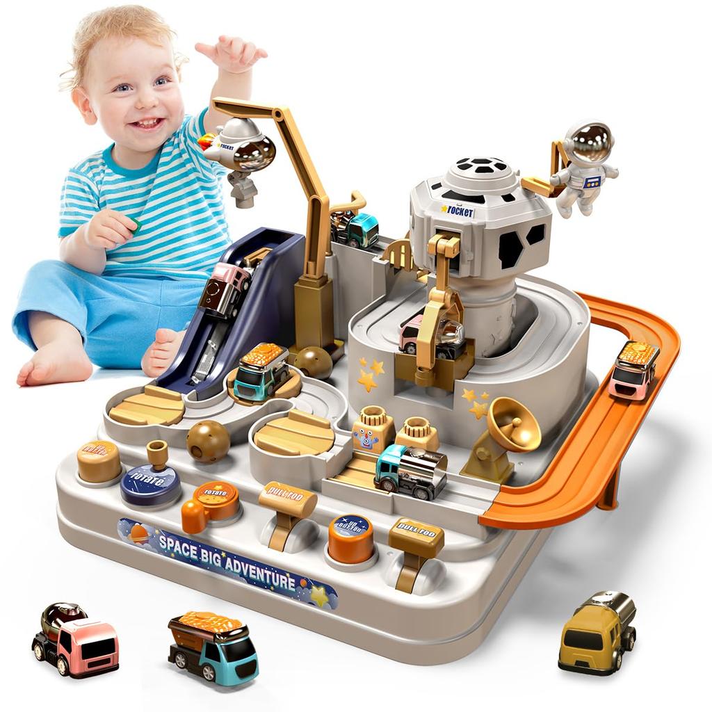 【Parent-Child Interaction】This space-themed car adventure toy is perfect for kids who love space stories. Kids can play with friends and family and improve their teamwork skills.