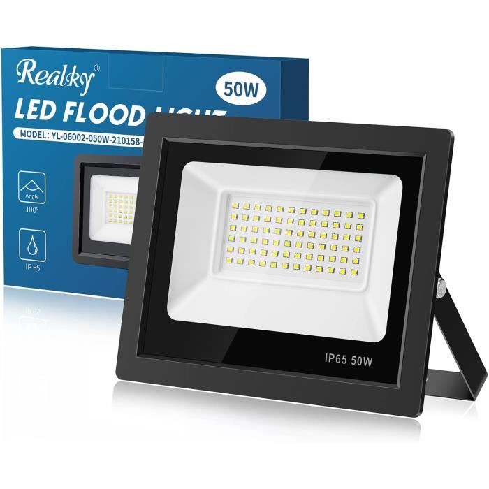 Projecteur LED - REALKY - 50W - 5000LM - IP65 Étanche - Éclairage Extérieur Jardin, Patio, Garage