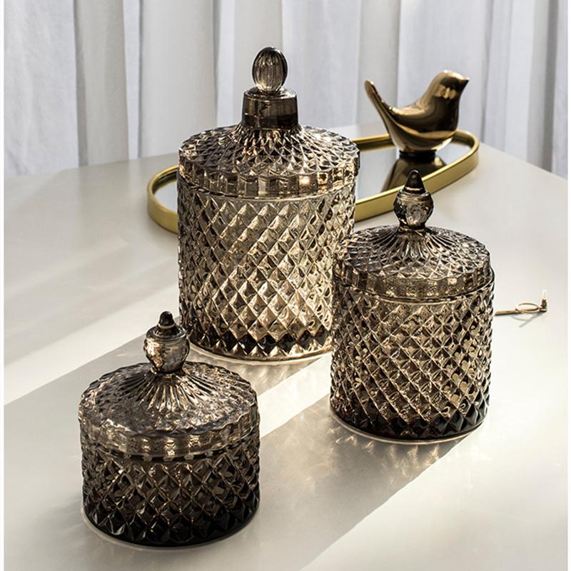 Dark Grey Crystal Glass Storage Jar with Cover Canned 600ML Diamond Cans Sugar Cotton Swab Box Household Organizer Decoration