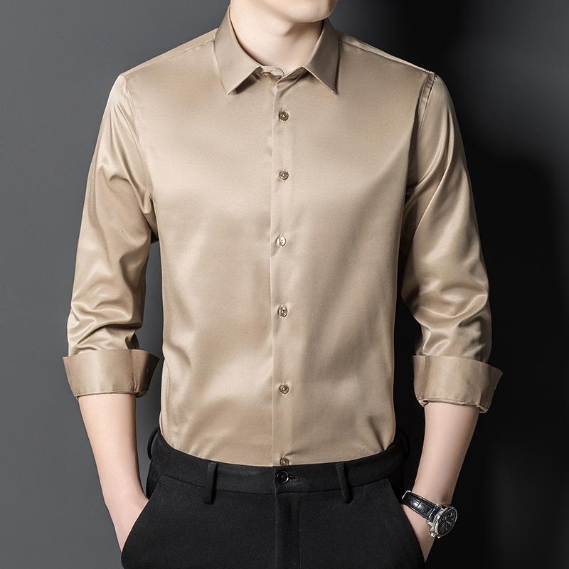 Introducing the 2024 Trend Men's Slim Fit Mulberry Silk Formal Shirt, designed for the modern professional seeking a blend of style and convenience. Crafted from high-quality polyester, this shirt offers an iron-free experience, ensuring you look sharp throughout the day. Its solid pattern and square neckline add a touch of sophistication, while the long sleeves provide a classic look suitable for any formal occasion. Perfect for business meetings or elegant dinners, this shirt effortlessly combines functionality with refined fashion.