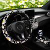 3 Pieces of Fabric Checker Flower Spider Web Car without Inner Ring Steering Wheel Cover Handbrake Cover Handle Cover