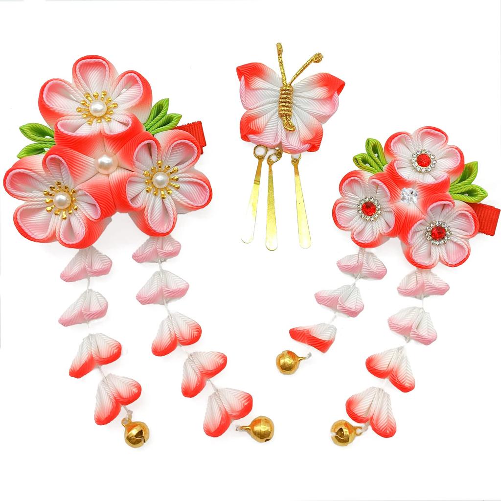 JZOON Hair Ornament Gradient Design with Perfect for Graduation and Handmade with Cherry and H5102 3-Piece Set, Tsumami-zaiku Trim, Shichi-Go-San,