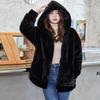 Winter new men's and women's couples fur coat women's imitation Rex rabbit hair hooded loose medium and long plush coat