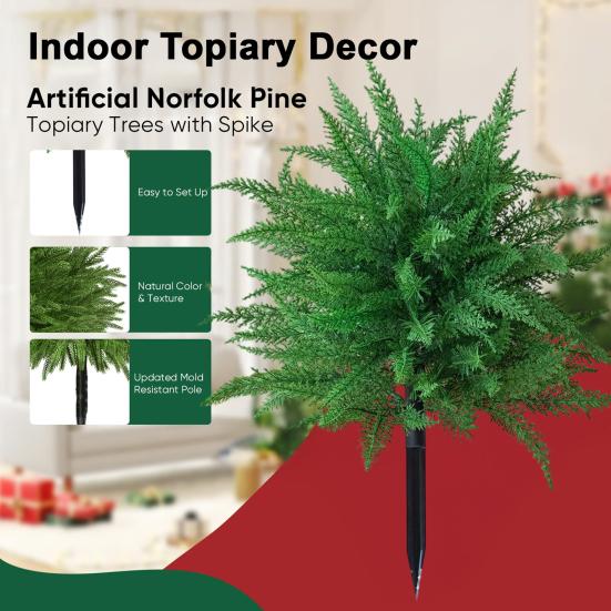 With a spike for easy insertion into flowerpots or outdoor soil, this versatile topiary is ideal for various settings such as the living room, bedroom, front porch, or special occasions like weddings and Christmas parties. Elevate your space with this decorative and reusable pine topiary today!