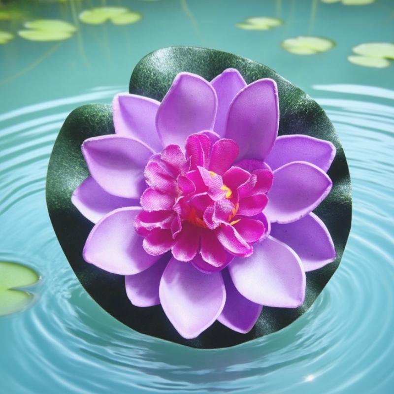 1pc EVA Artificial Lotus Flowers with Lily Pads - Floating Foam Pond Plants for Aquarium, Pool, Water Garden Decoration