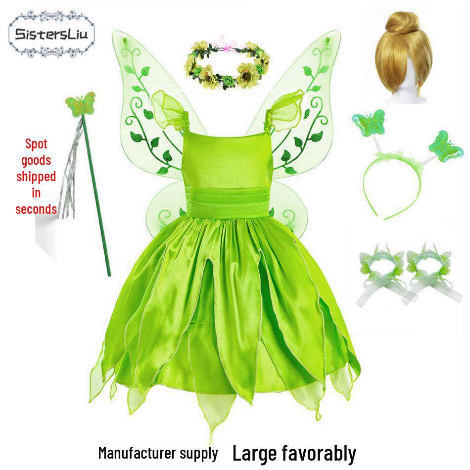 Children's Halloween Green Fairy Tinkerbell Costume Dress — tüm dünyaya ücretsiz teslimat ile online ürün satın alın!