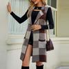 BITCED Women's Longline Blazer-Collar Sleeveless Knit Cardigan Check Jacquard Knitted Vest Outerwear Cardigan — tüm dünyaya ücretsiz teslimat ile online ürün satın alın!
