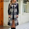 BITCED Women's Longline Blazer-Collar Sleeveless Knit Cardigan Check Jacquard Knitted Vest Outerwear Cardigan