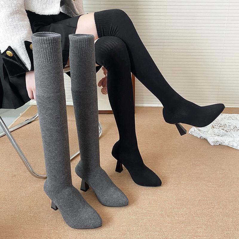 Knitted Socks Boots Fashion Pointed Toe Sleeve Breathable Non-Slip Wear-Resistant Slim Heel