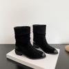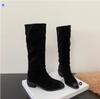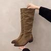 Fashion Women's Boots Stacked Pleated Temperament Middle Heeled Women Shoe Fashion Autumn Solid Color Long Tube Female High Knight Botas