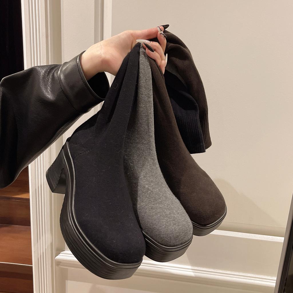 Popular autumn and winter thick-soled knitted boots children's socks long boots elastic over the knee fashion round head medium heel high boots — tüm dünyaya ücretsiz teslimat ile online ürün satın alın!