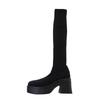 Popular autumn and winter thick-soled knitted boots children's socks long boots elastic over the knee fashion round head medium heel high boots