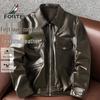 Futing Men's Genuine Leather Lapel Motorcycle Jacket — tüm dünyaya ücretsiz teslimat ile online ürün satın alın!