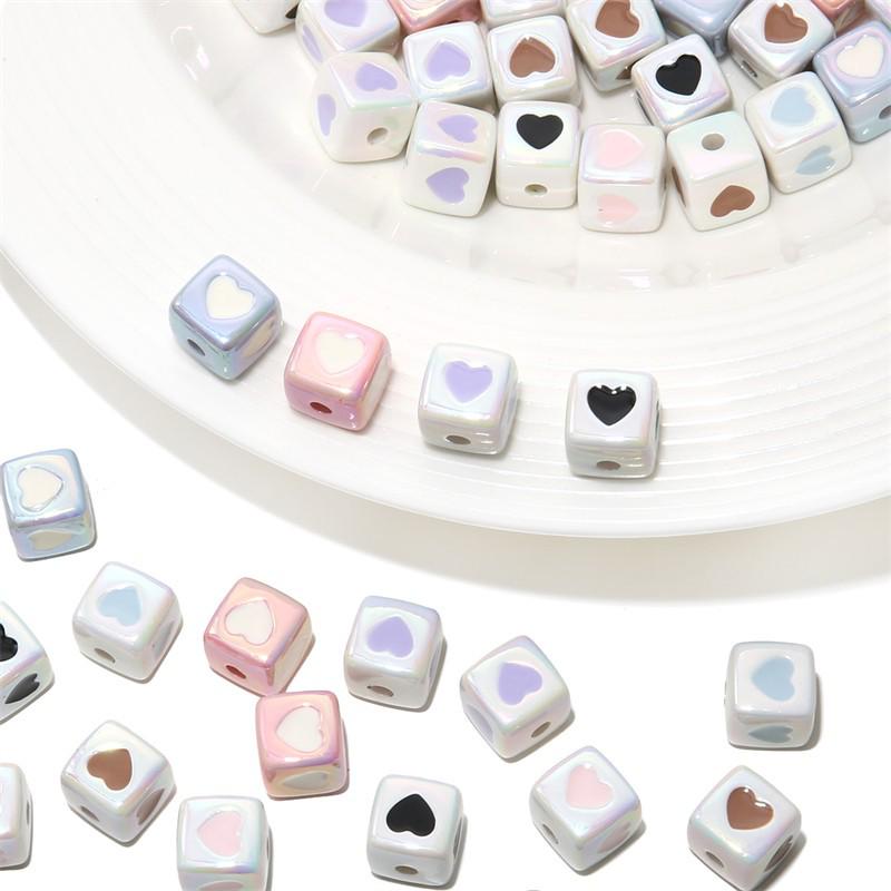 12mm Color-Plated 3D Heart Square Beads for DIY Hairpins & Bracelets — tüm dünyaya ücretsiz teslimat ile online ürün satın alın!