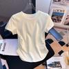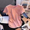 Women's Summer 2024 Ruched Waist Irregular Short Sleeve Round Neck T-Shirt