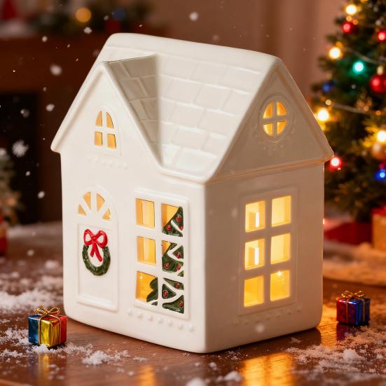 Christmas Village House Figurine LED Lighted White Small House Tabletop Decoration Winter Rustic Farmhouse Holiday Decor for Mantel Tabletop Room — tüm dünyaya ücretsiz teslimat ile online ürün satın alın!