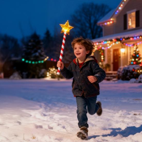Festive design centerpiece: Featuring a charming red and white candy cane design topped with a sparkling LED star, this 12-inch magic stick light controller perfectly complements your Christmas decor theme. Its playful aesthetic adds holiday cheer to mantels, tables, or any display area.