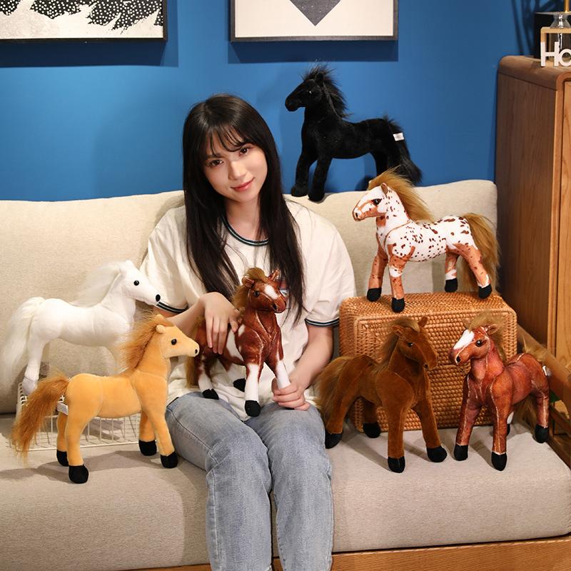 Simulation animal black pony doll plush toy small white horse zodiac horse doll children's doll — tüm dünyaya ücretsiz teslimat ile online ürün satın alın!