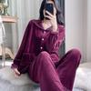 Women's Retro Red Fleece Pajamas Set with Lace - Autumn/Winter Noble Court Style — tüm dünyaya ücretsiz teslimat ile online ürün satın alın!