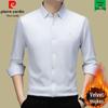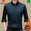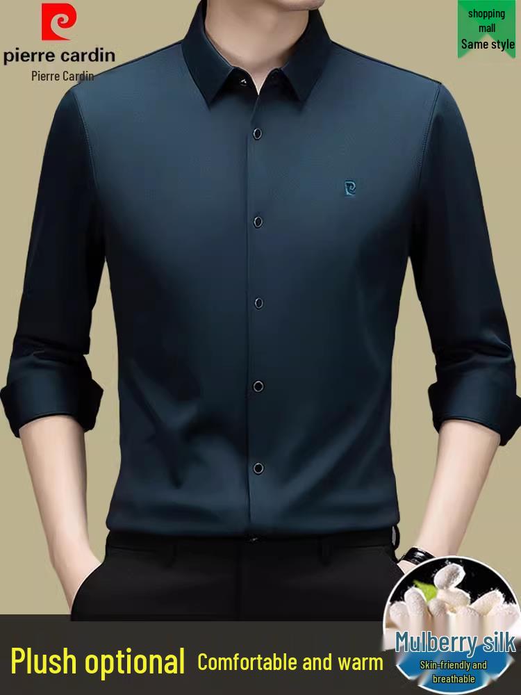 Pierre Cardin Men's Long Sleeve Mulberry Silk Shirt - Iron-Free, Plus Velvet, High-End Business Casual for Autumn/Winter