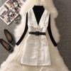 Women's Fashion Woolen Plaid A-Line Dress with Knitted Shirt