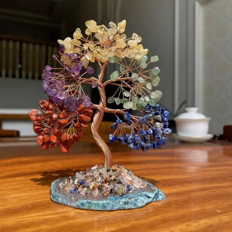 Vintage Gemstone Bonsai Tree with Mixed Crystal Stones Chakra Healing Feng Shui Decorative Tree Positive Energy Crystal Tree