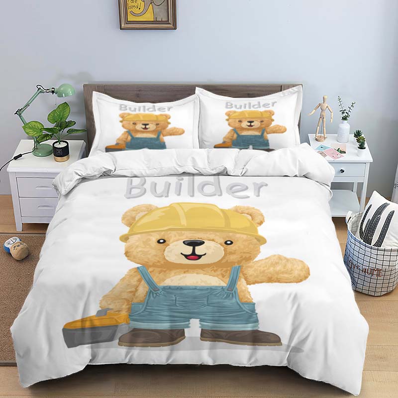Bear Print Digital Print Polyester Bedding Sets,Girl'S Cover,Boys Duvet Cover Set For Teens, Queen Cover 2Pcs Pillowcase