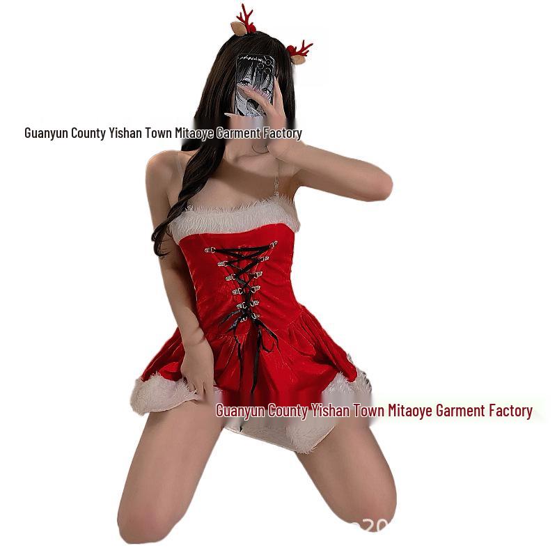 Christmas Reindeer Cosplay Red Sling Dress - Cute & Sexy Holiday Costume — tüm dünyaya ücretsiz teslimat ile online ürün satın alın!