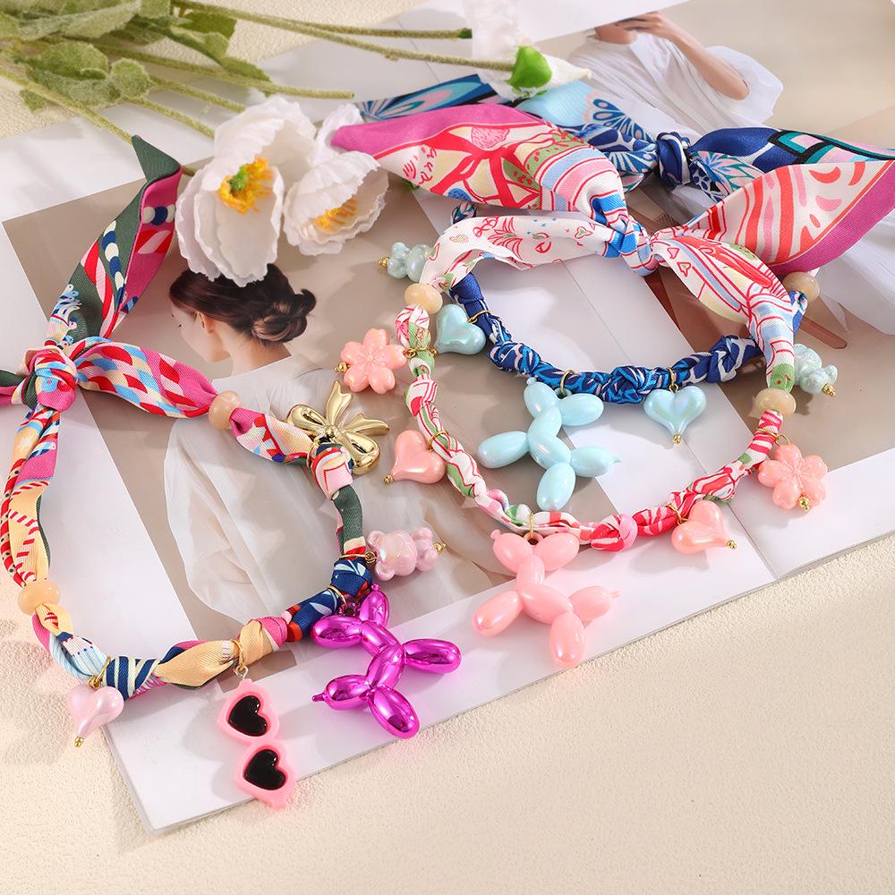Dopamine Color Silk Scarf Bowknot Pendant Necklace for Women - Light Luxury Fashion, Pink Puppy Design