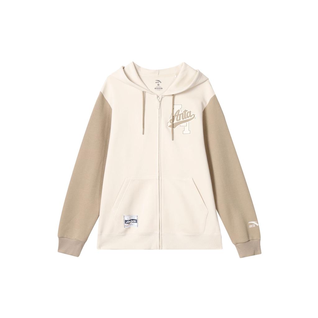 Anta Color Block Letter Print Casual Hooded Jacket Unisex Jacket Stone-White Charlotte-Gray 152338730-1