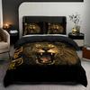 Lion Pattern Mattress Three-Piece Digital Printing Couple Black Gold Crown Bedspread Bedding