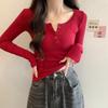 Burgundy super white, slightly fat and thin, slim, semi-open neck thread, long-sleeved base, female autumn sweet and spicy