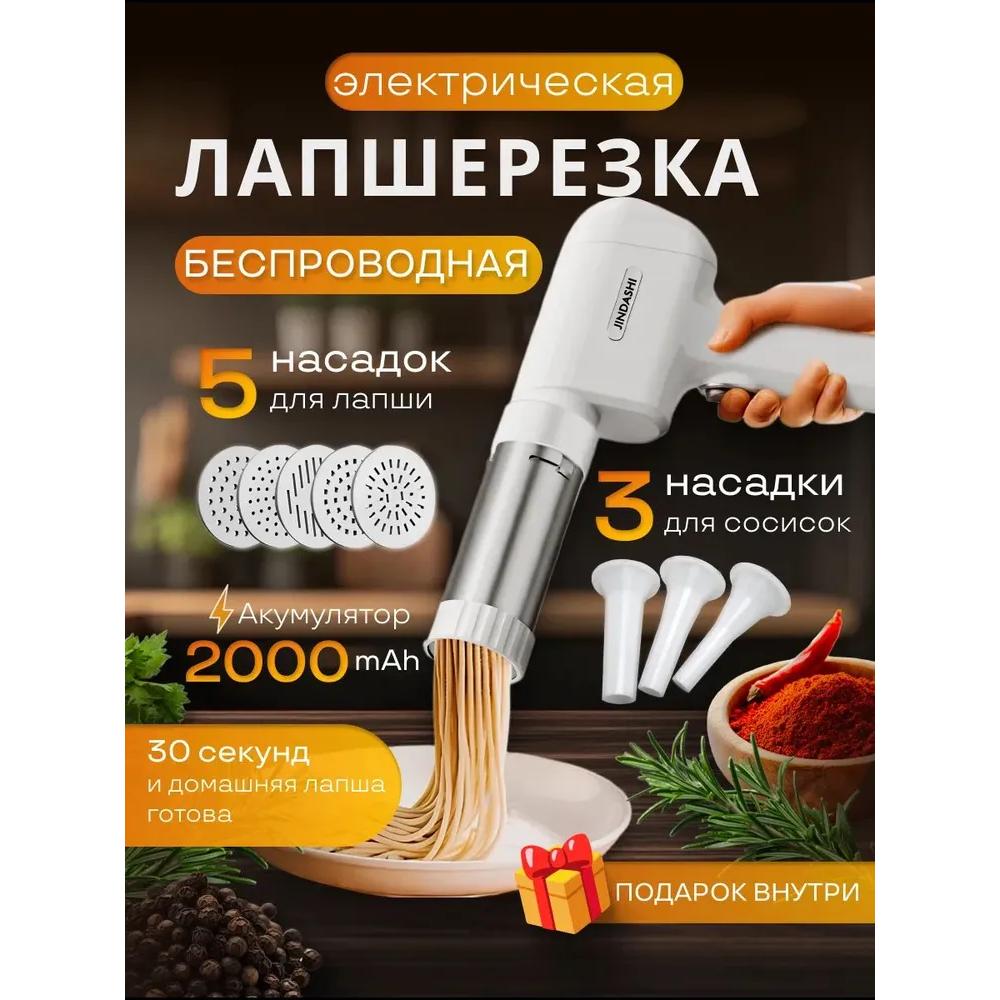 Length, cm: 29An electric stainless steel noodle cutter is an indispensable assistant in your kitchen, which will allow you to quickly and easily prepare fresh, appetizing and environmentally friendly homemade noodles. Made from strong and durable material, it will serve you for many years and will not have a harmful effect on your body. The pasta machine is made of materials that are safe for health and does not corrode or decompose. Thanks to its ease of use and compact size, the noodle cutter will become one of your favorite items in the kitchen and guarantee a well-fed and satisfied household! Included with the noodle cutter you receive: an electric noodle cutter, an attachment for preparing linguine, noodles,fettuccine, spaghetti, egg noodles, as well as three nozzles of different sizes for preparing sausages and sausages, a USB cable for charging, a spatula for convenient work with the dough. An electric noodle cutter can be very easily disassembled into parts for easy removal of contaminants. After use, simply rinse the nozzles and noodle container with running water. The noodle capacity is 200 grams. The noodle cutter is controlled using a button. The time between power supply (pressing the button) and the appearance of the cut dough is 20 seconds. The battery life (lithium battery) is 4 hours. The noodle cutter will be an excellent gift for your beloved women on March 8th.