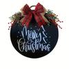 The product includes a round wooden door sign with the words "Merry Christmas" printed it, a red plaid bow, and decorative and red berries. It's a perfect size for hanging a door or wall, making it an ideal Christmas decoration.