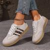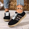 Women's Wide Width Leopard Print Sneakers - Round Toe Lace-Up Retro White Shoes, Casual Fashion Flats for Everyday Wear