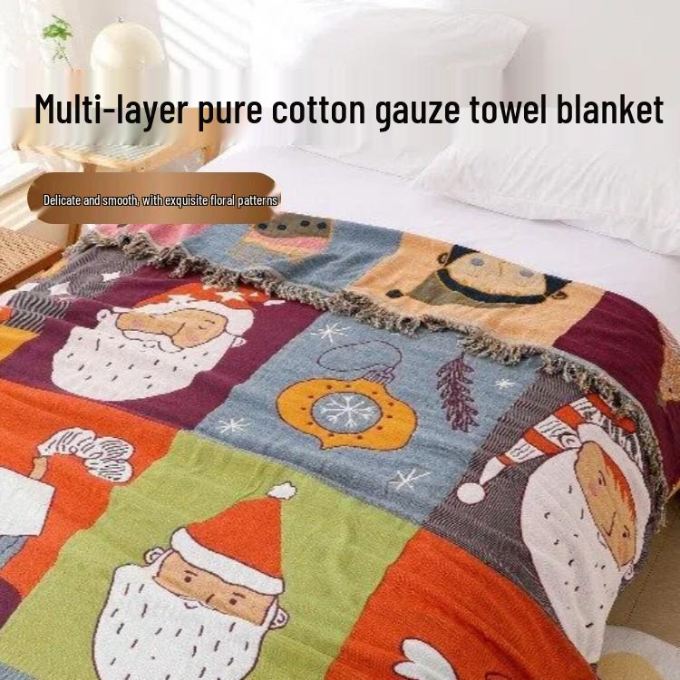 Christmas Tassel Throw Blanket, All Cotton, Machine Washable, Breathable, Single Bed Fitted Sheet Style