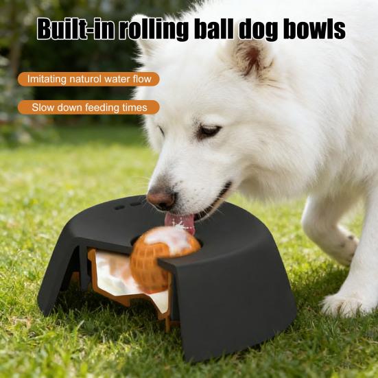 Innovative No-Spill Slow Feeder Design: Featuring a rolling ball inside the bowl, it mimics natural water flow by gently moving liquids to keep them oxygenated and fresh. This clever mechanism encourages dogs to drink more while significantly reducing splashes and spills, maintaining a tidy feeding area and preventing messes on your floors.