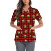 Women's Cute Bow Printed Work Clothes V-neck Double Layer Pockets Basic Short Sleeve Top Pullover