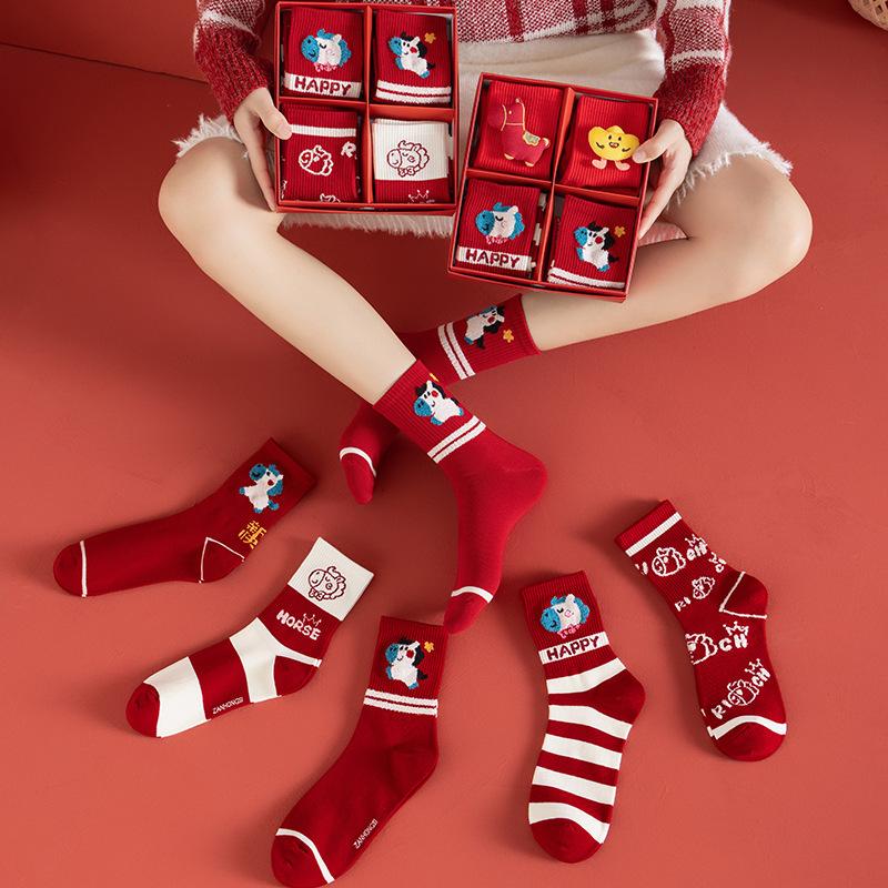 1Pair 2026 Year Of The Horse Red Socks Autumn Winter Warm Mid-Tube Socks Cartoon Pony Socks Year Party Gifts