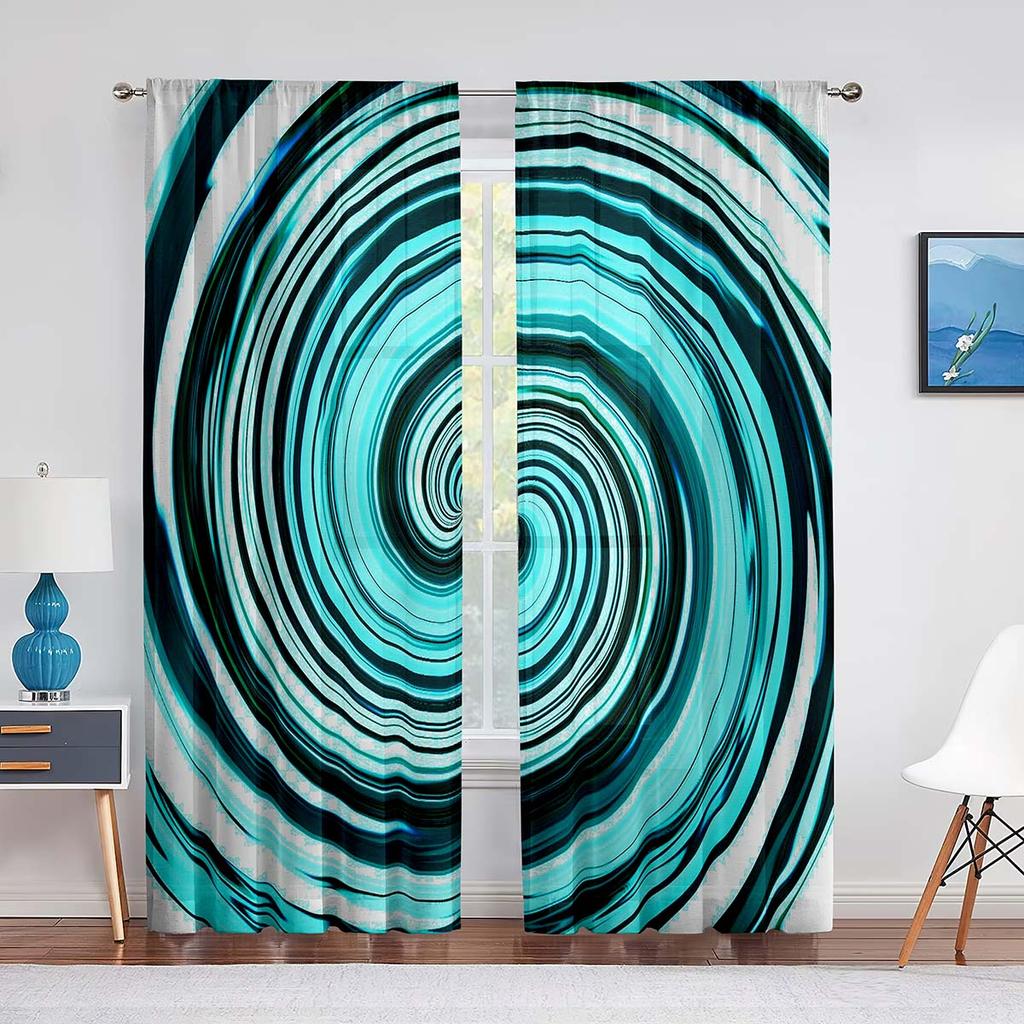 Cyan-blue Psychedelic Trippy Hippie Swirl Tulle Curtains for Living Room Decoration Chiffon Sheer Voile Kitchen Bedroom Curtain