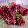 1Pc Artificial Roses Flowers Wedding Bridal Bouquet Garden Fake Silk Peony Hydrangeas Vase Home Decoration Photography Props