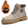 Warm New Plush Fur Winter Man Brand Yellow Outdoor Lace Up Cowboy Boots Leather Motocross Boots Fashion Non-Slip Men Ankle Boots