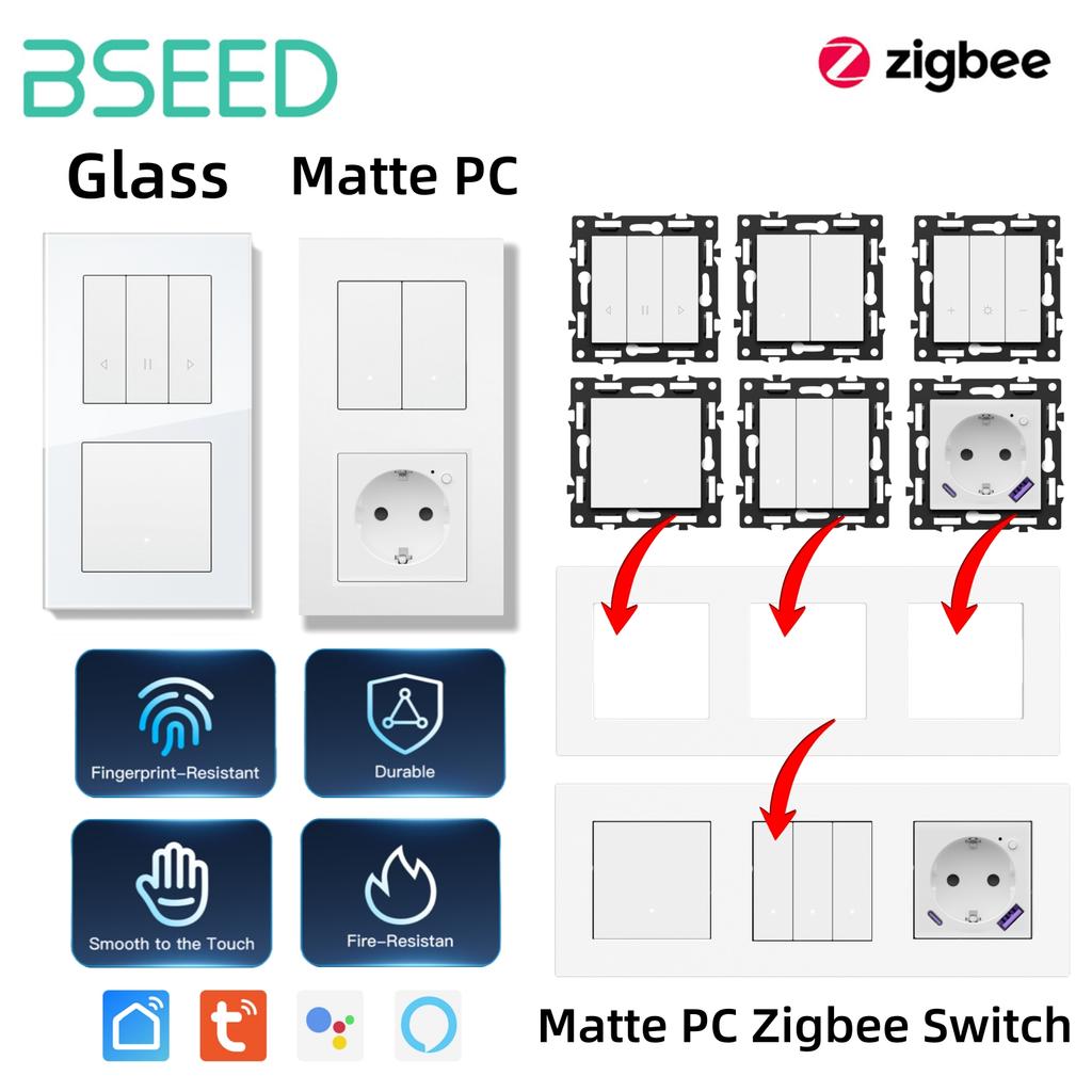 BSEED ZigBee Click Switch Modules Smart Light Switch Parts Glass/PC Frame DIY Combination Zigbee Sockets USB Charge E-Series